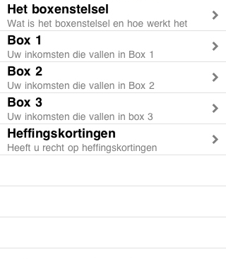 Onderin de App staan de tabbladen. Deze worden geplaatst afhankelijk van de Hoofdonderwerpen die u zelf aanmaakt.